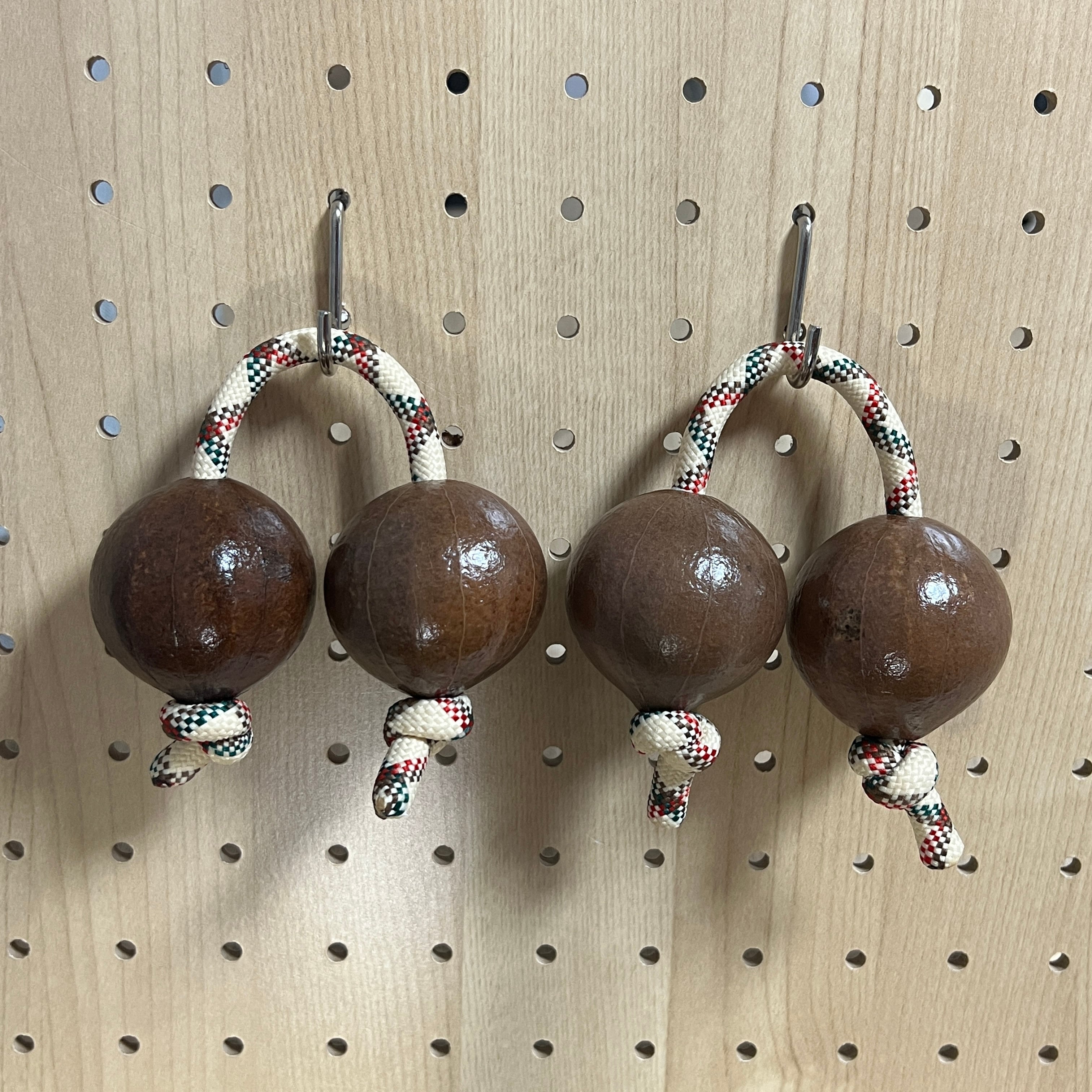 綺麗な球状に近くてヒビが入っていない上質な木の実を厳選して一つ一つ丁寧に研磨しています。
