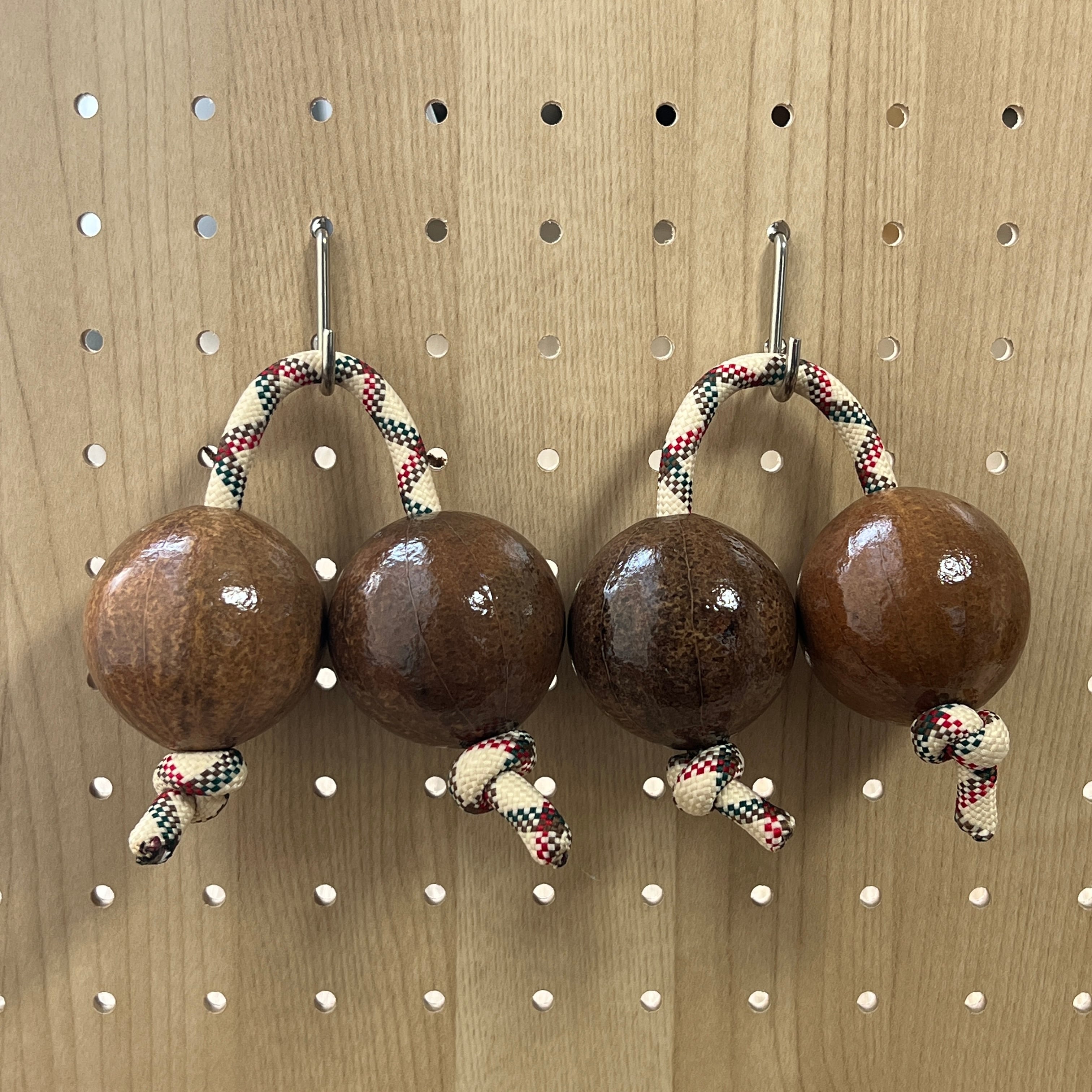 綺麗な球状に近くてヒビが入っていない上質な木の実を厳選して一つ一つ丁寧に研磨しています。