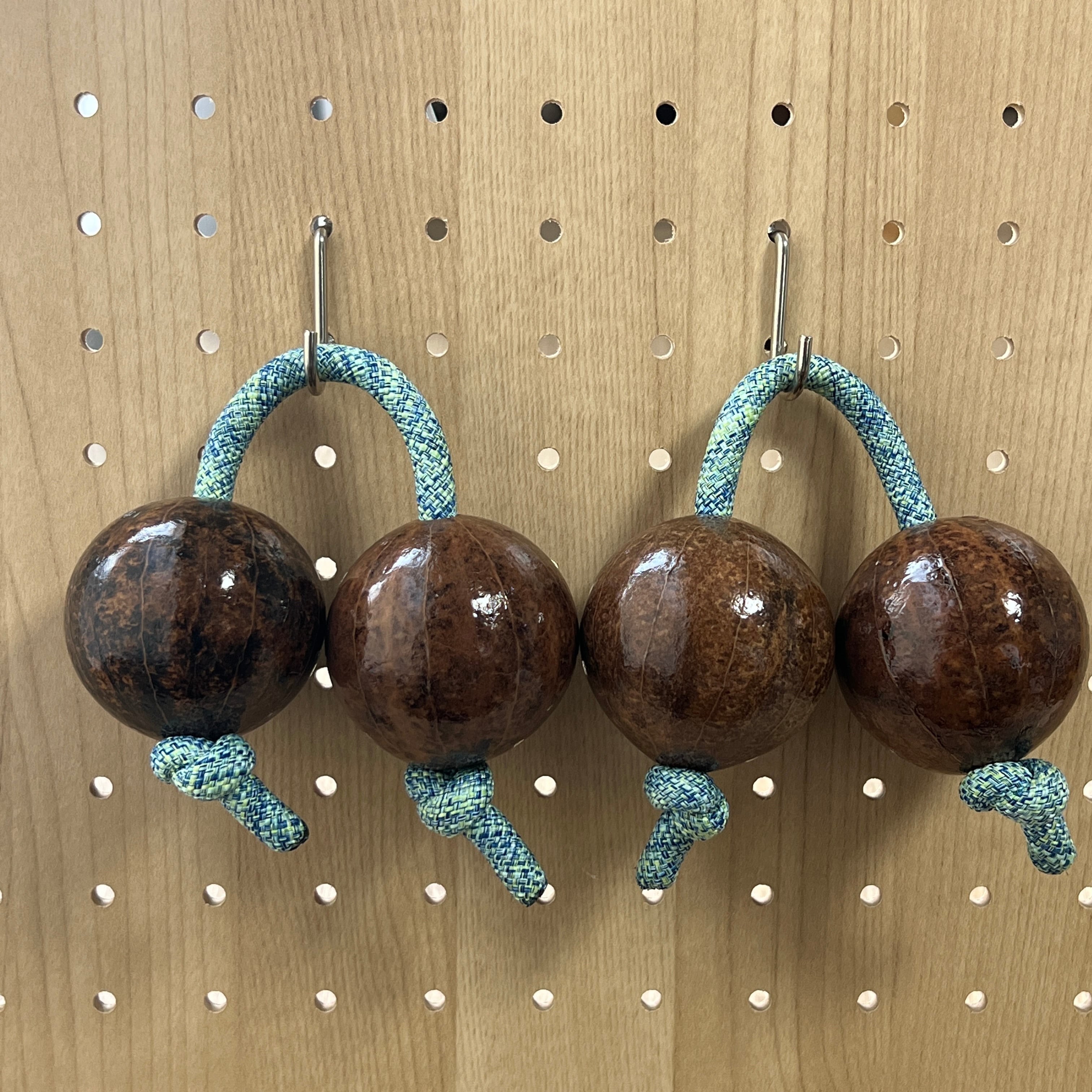 綺麗な球状に近くてヒビが入っていない上質な木の実を厳選して一つ一つ丁寧に研磨しています。