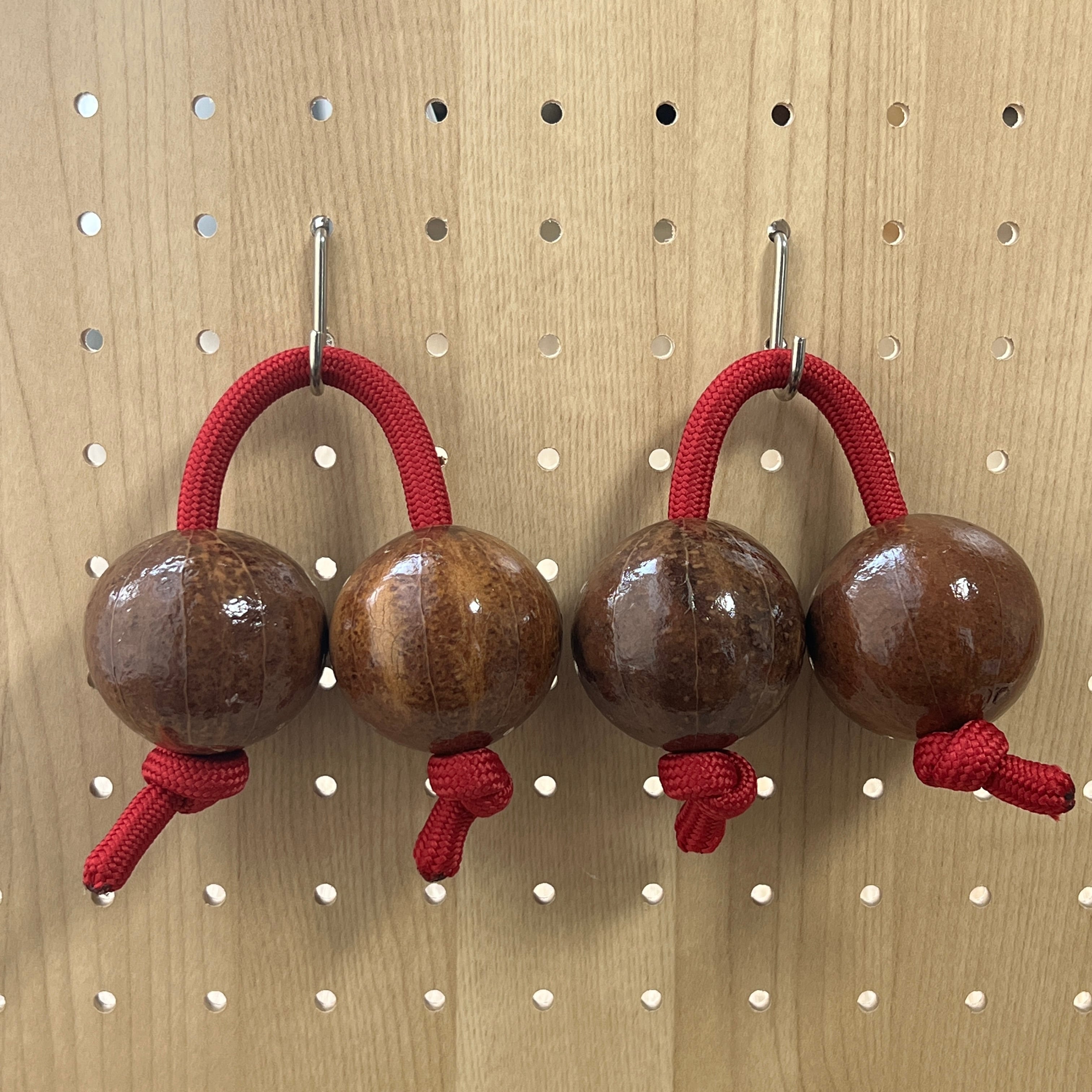 綺麗な球状に近くてヒビが入っていない上質な木の実を厳選して一つ一つ丁寧に研磨しています。