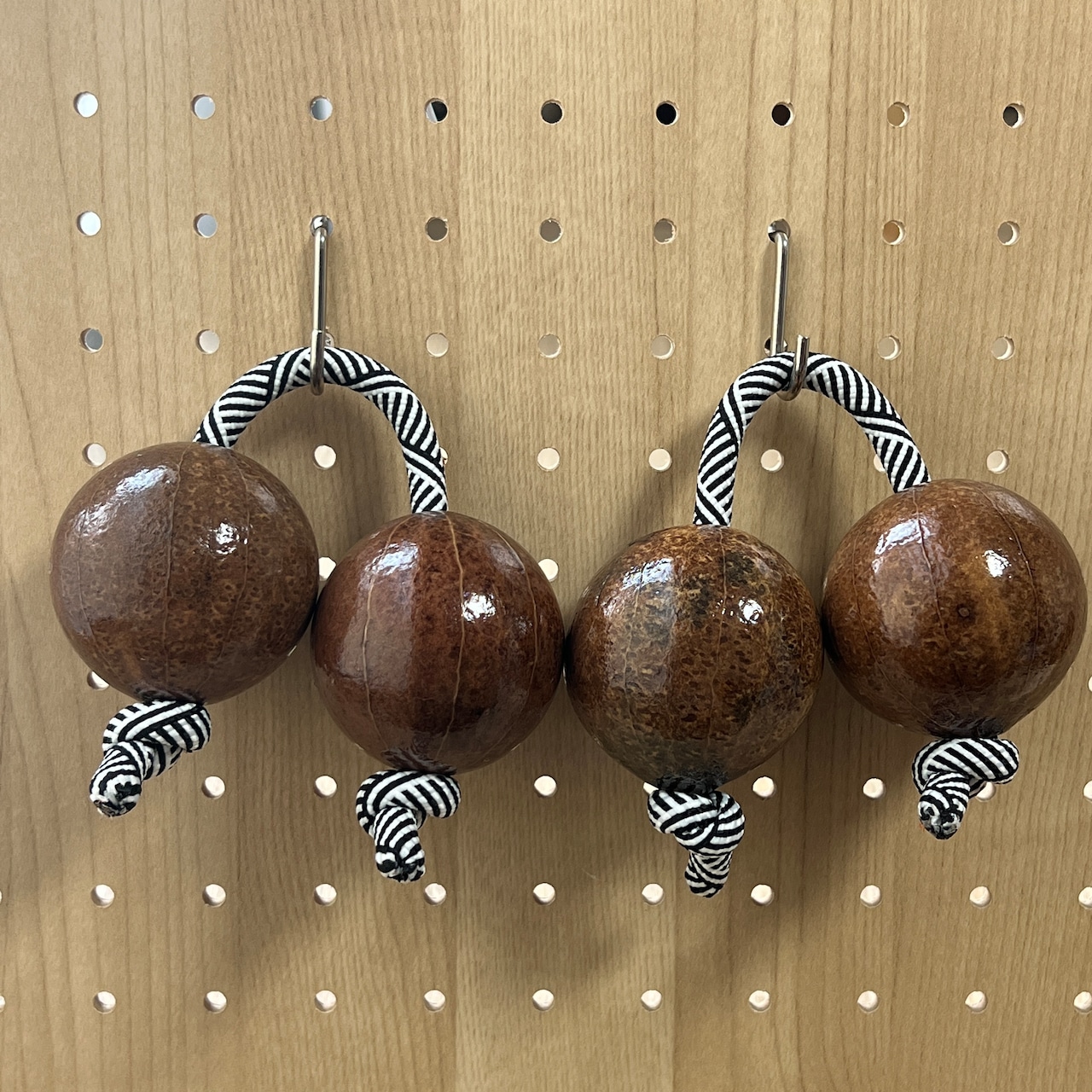 綺麗な球状に近くてヒビが入っていない上質な木の実を厳選して一つ一つ丁寧に研磨しています。