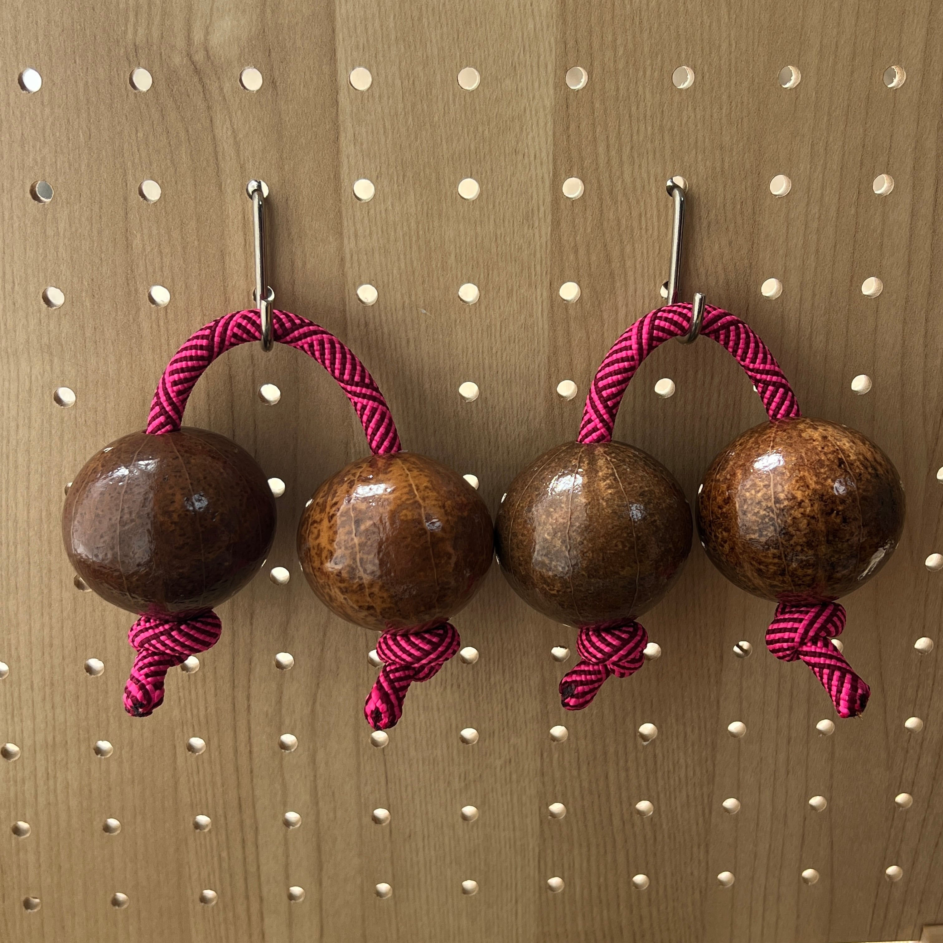 綺麗な球状に近くてヒビが入っていない上質な木の実を厳選して一つ一つ丁寧に研磨しています。