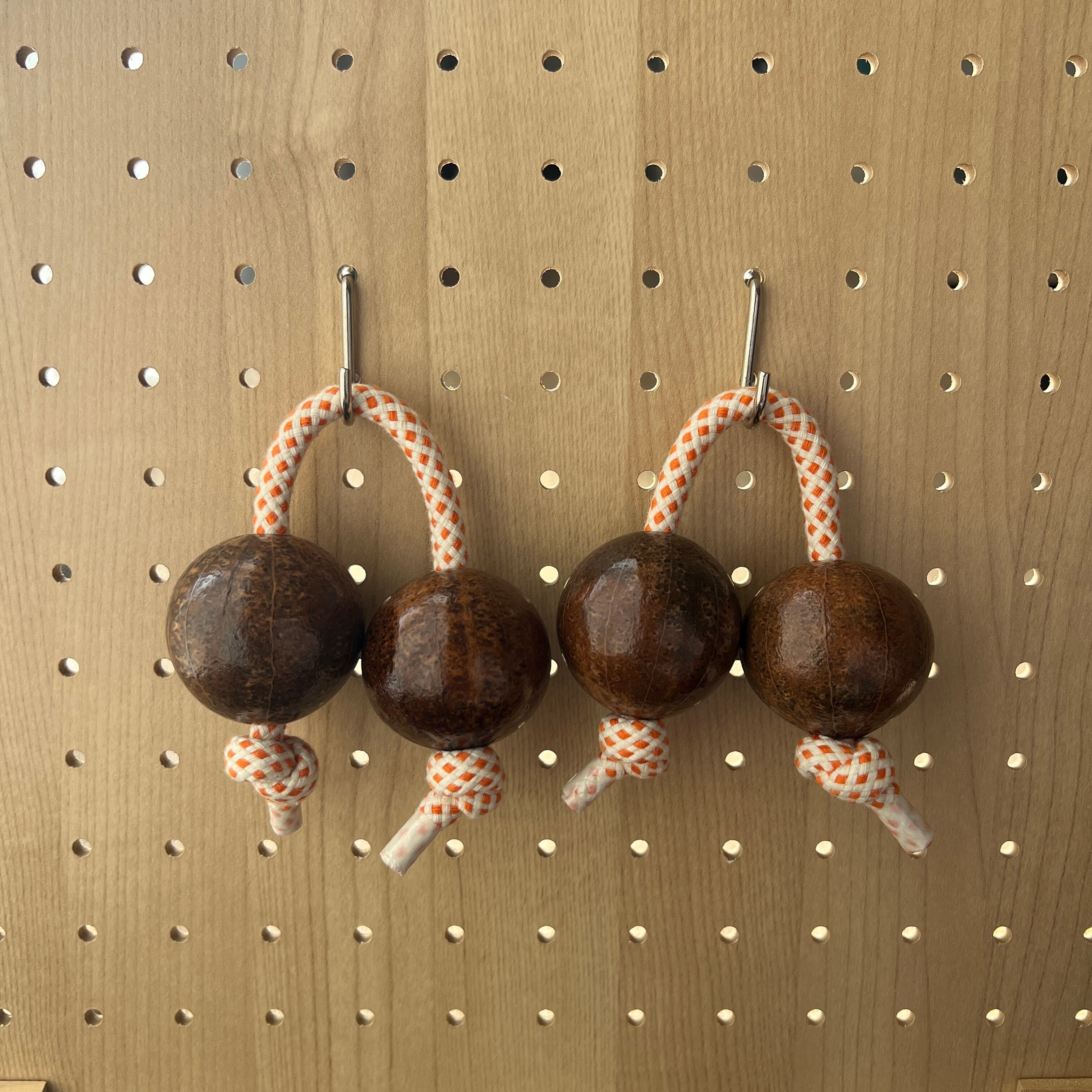 綺麗な球状に近くてヒビが入っていない上質な木の実を厳選して一つ一つ丁寧に研磨しています。