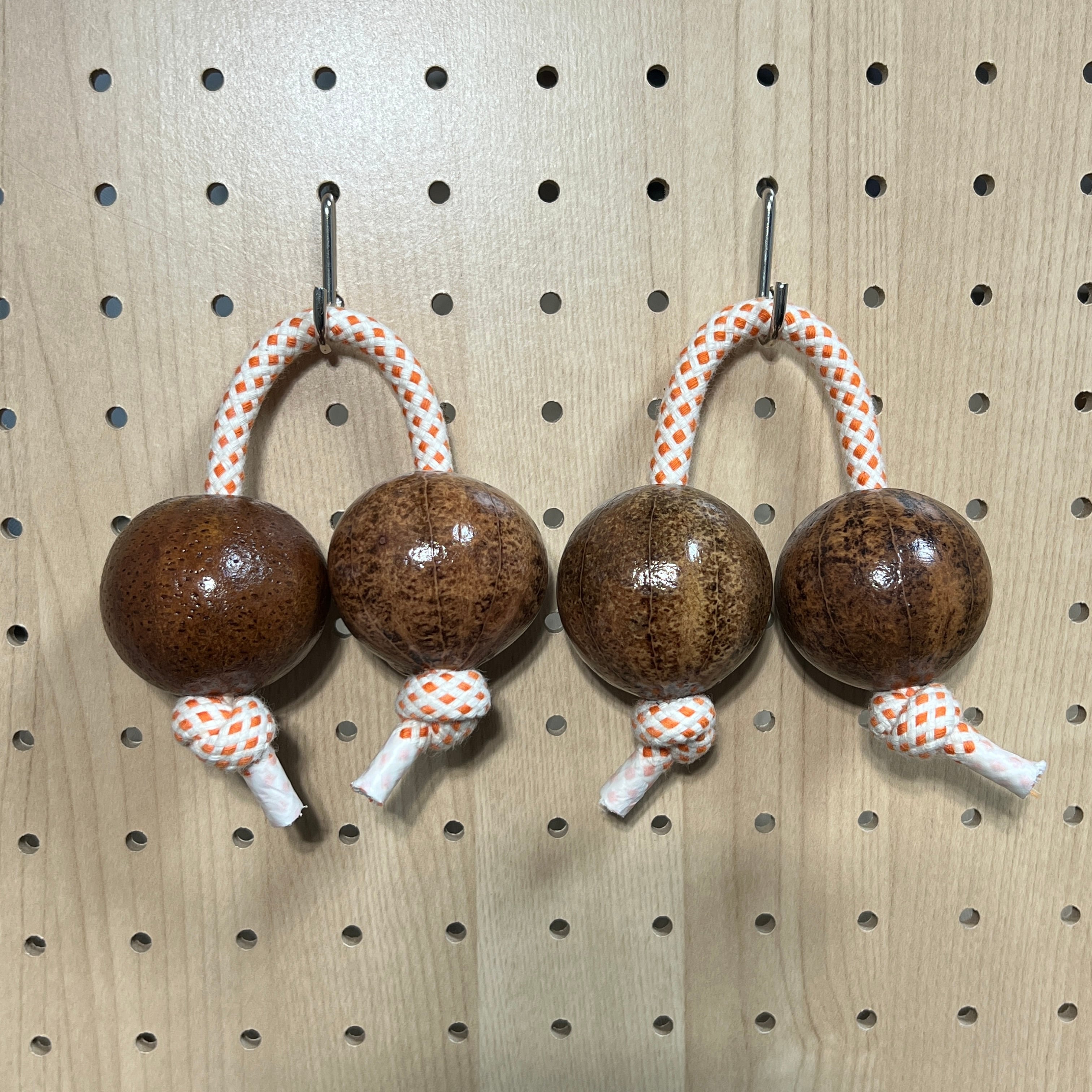 綺麗な球状に近くてヒビが入っていない上質な木の実を厳選して一つ一つ丁寧に研磨しています。