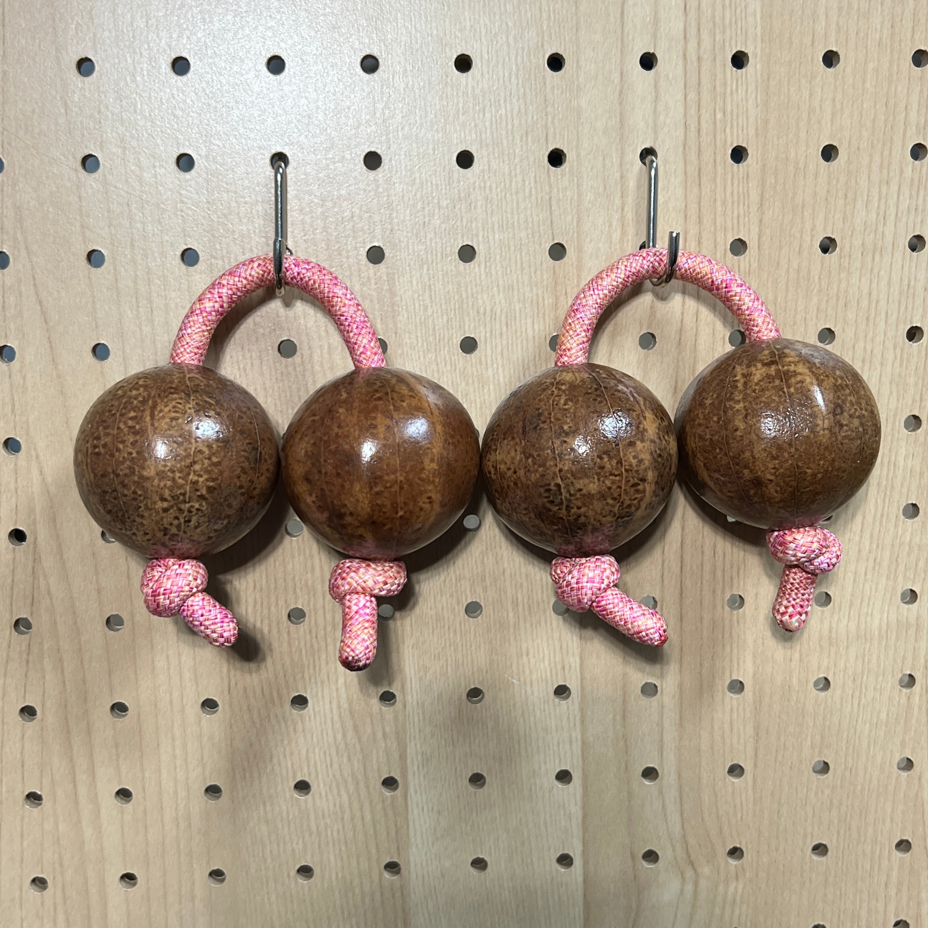 綺麗な球状に近くてヒビが入っていない上質な木の実を厳選して一つ一つ丁寧に研磨しています。