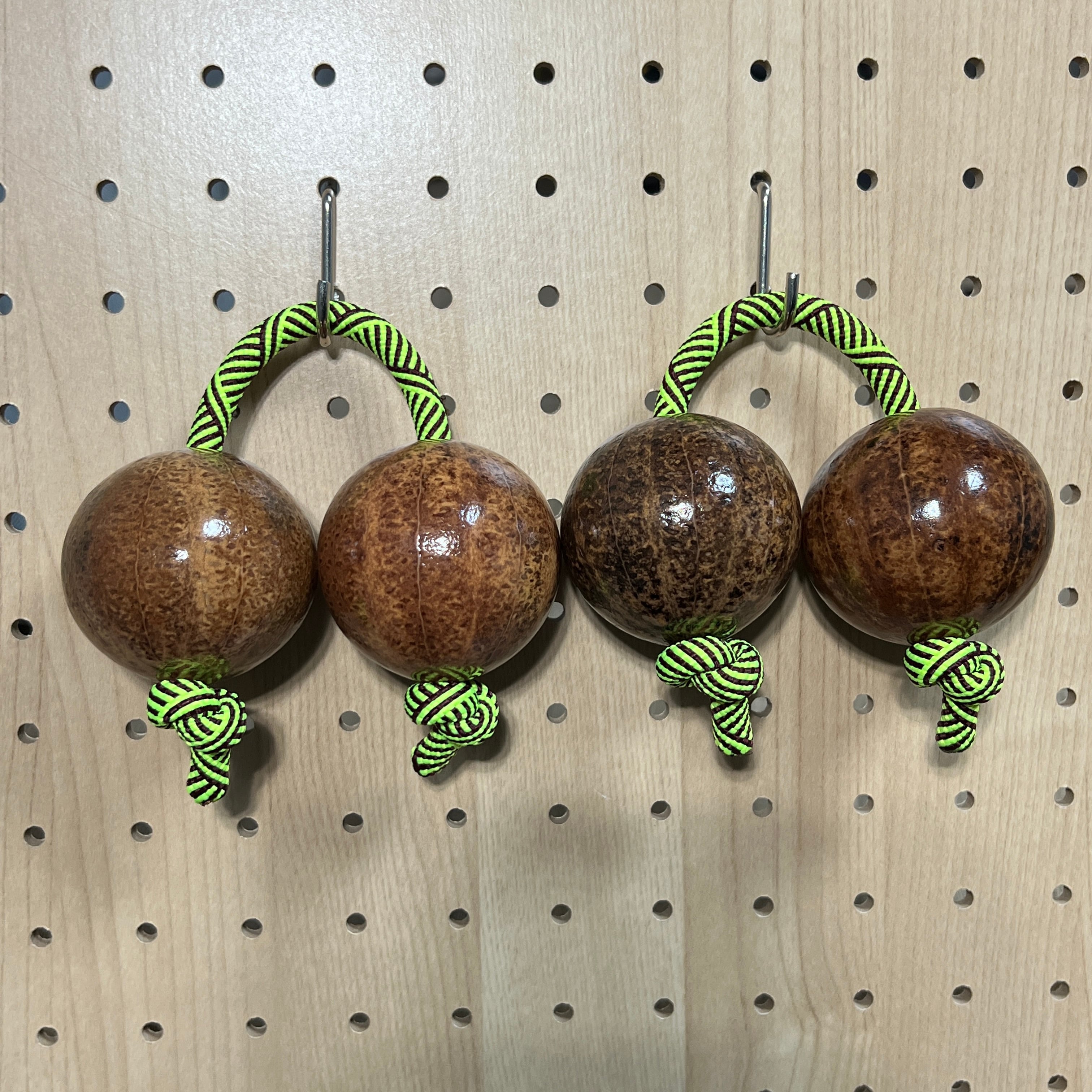 綺麗な球状に近くてヒビが入っていない上質な木の実を厳選して一つ一つ丁寧に研磨しています。